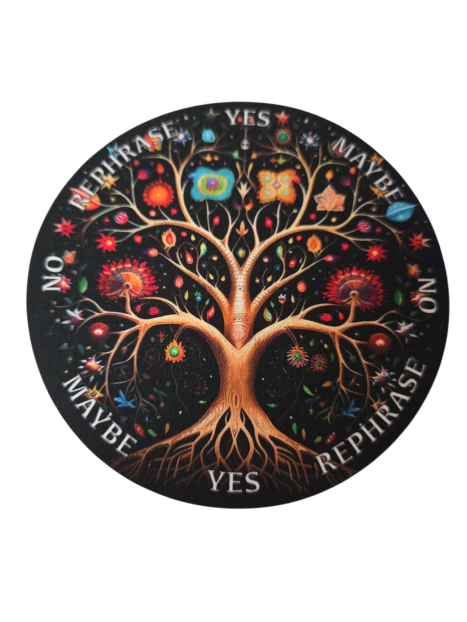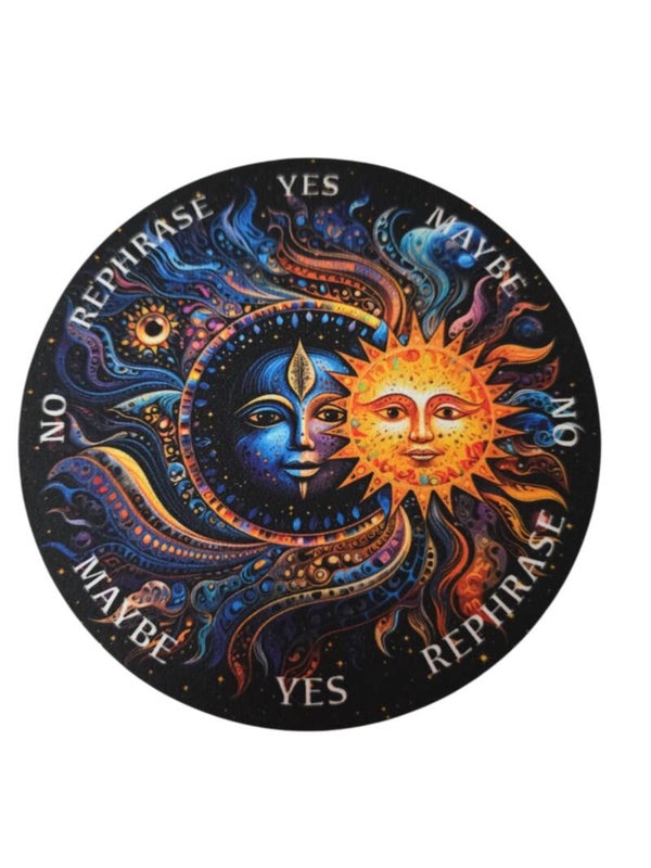 Denne spådomspenddelmatten er laget av kvalitetsgummi, mål 15 cm i diameter og er lett, noe som gjør den enkel å transportere for åndelig bruk.