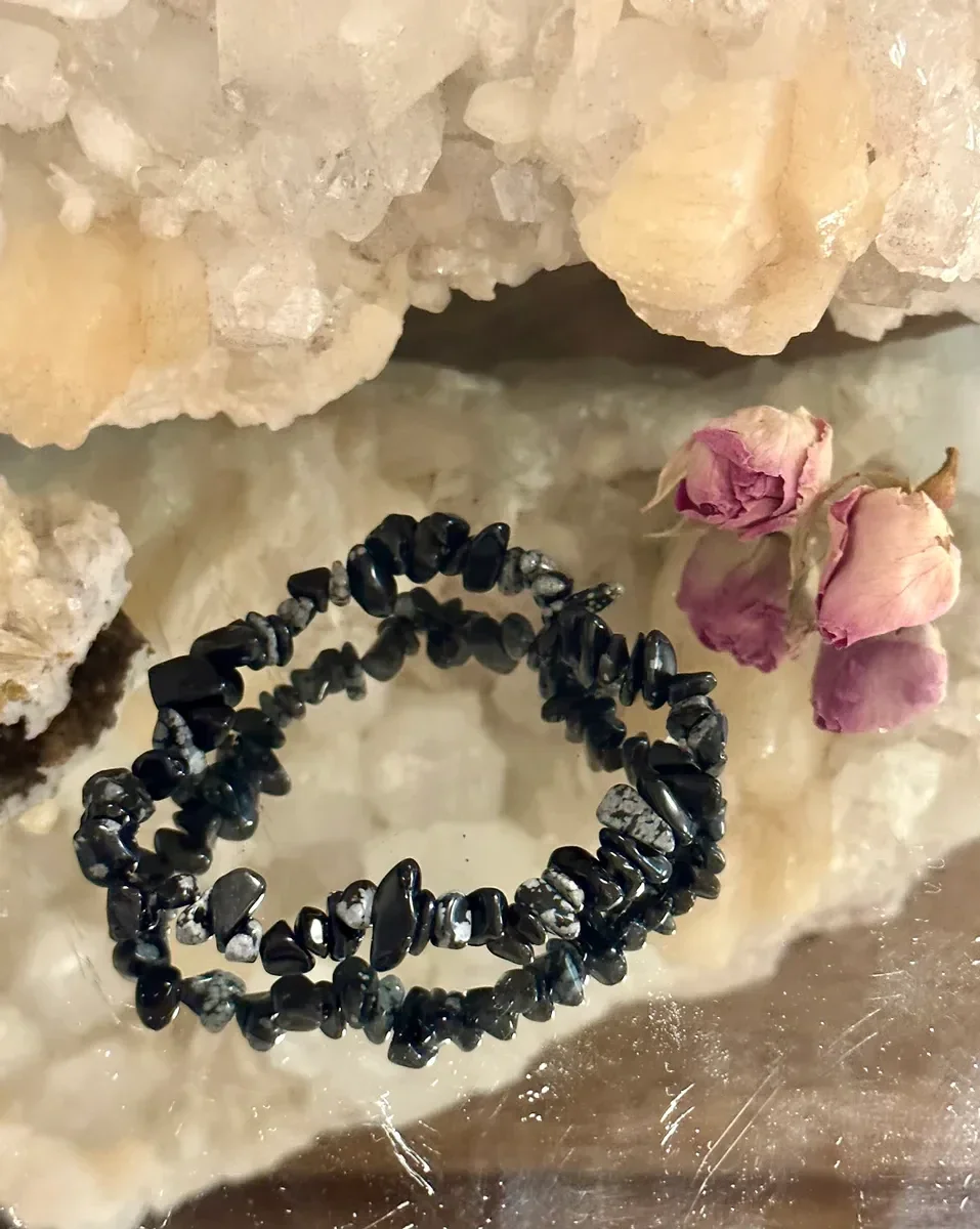 Obsidian Snøfnugg Chips Armbånd