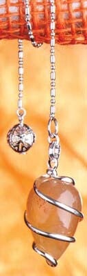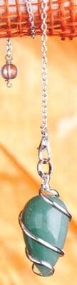 Grønn aventurinpendel med spiral Pendel med en spiral av forgylt kobber. Den er ca 2,5 cm høy.