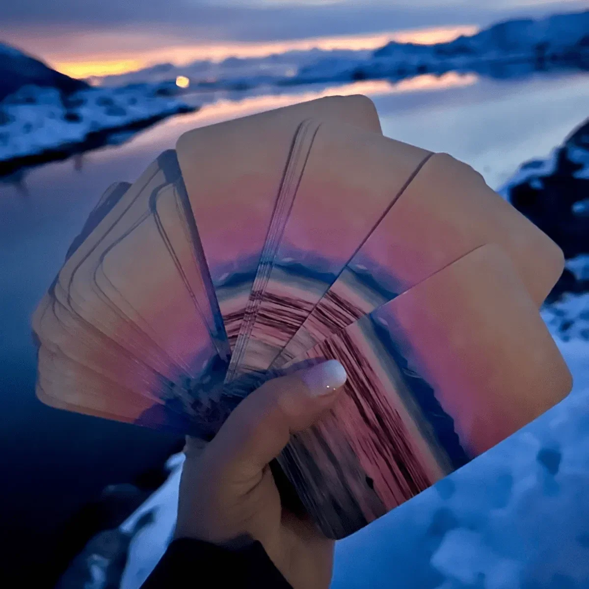 Dette er min største kortsett til nå, med hele 80 ulike kort, titler og tolkninger. Alt dypt inspirert av mine opplevelser i Lofoten høsten 2023. Jeg har fått oppleve det vakreste lys og de største naturopplevelser jeg noen gang har hatt. Den ene dagen vakrere enn den andre, og møte med dyr og mennesker har overveldet meg. Med stor ydmyket har jeg vært en budbringer og puttet all energi og de beste intensjoner inn i disse kortene. Jeg er så stolt og glad for denne stokken, som er tilegnet Lofoten, menneskene og lyset.